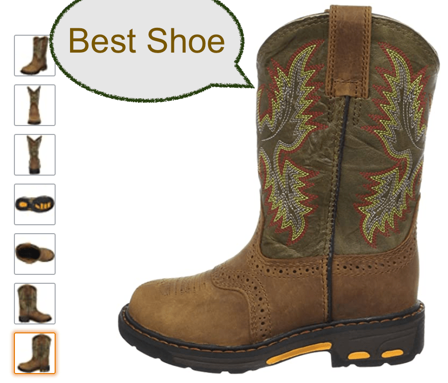 - WIGGLE ROOM: Featuring a round-toe shape, these kids’ boots come with a removable Ariat insole that creates up to an additional half size of wiggle room to your toes for growing feet.